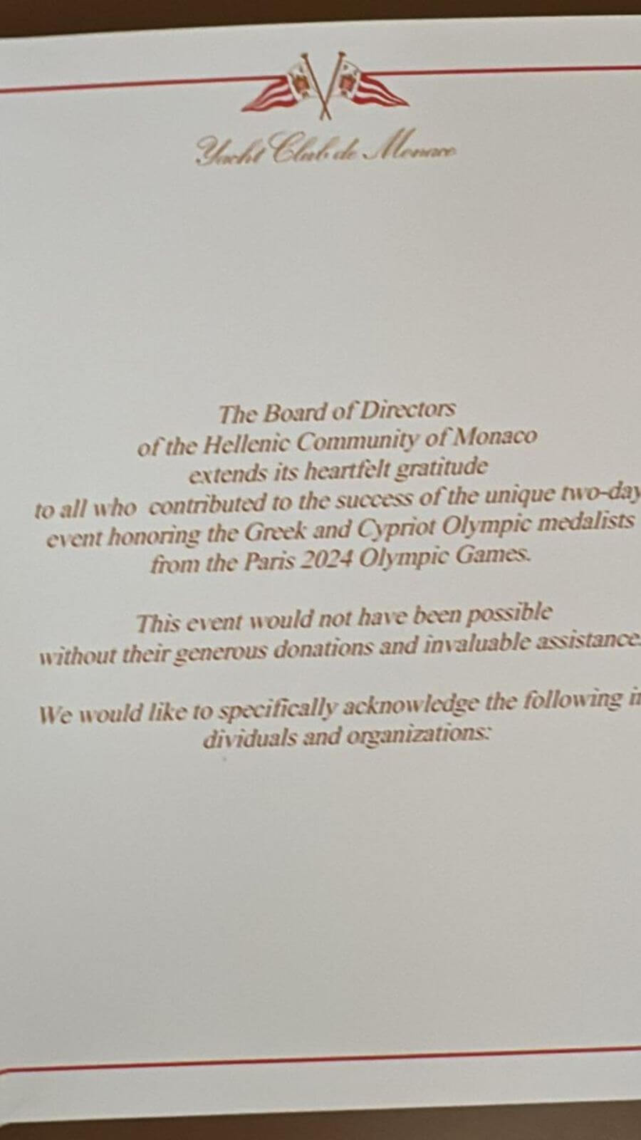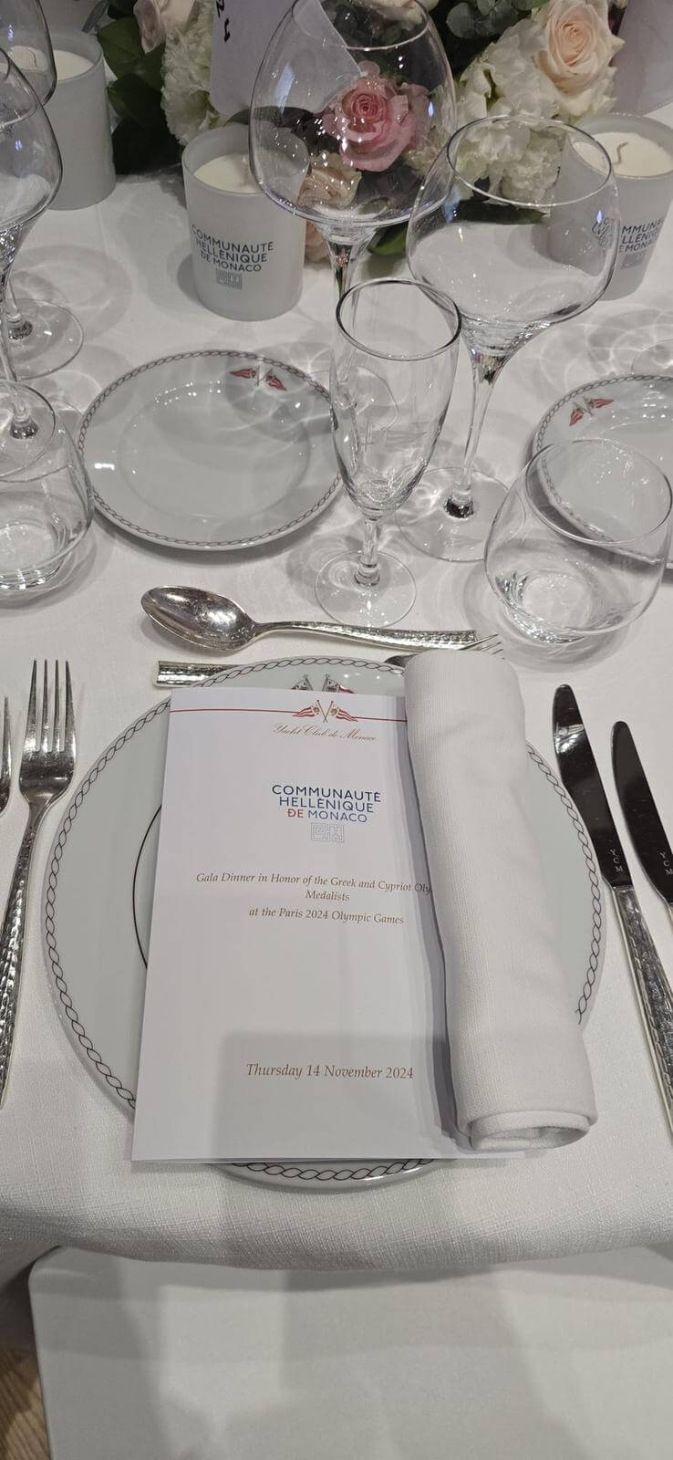 On Thursday, November 14th, the Hellenic Community of Monaco, under the visionary leadership of our President, Mrs. Ekaterini Lanara, and with the invaluable support of our Board of Directors, hosted the Gala Dinner Honoring the Greek and Cypriot Olympic Medalists at the prestigious Yacht Club of Monaco.