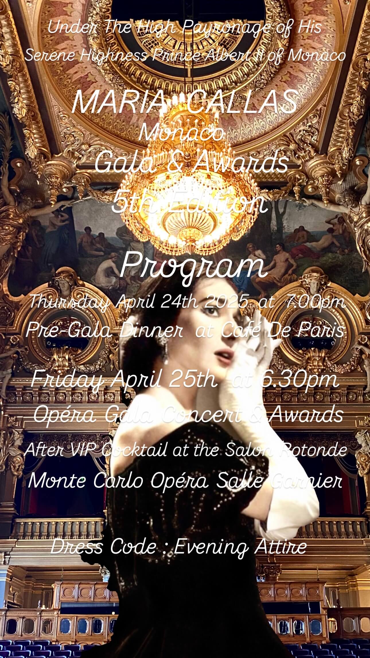 Dear our Hellenic Community members We are pleased to announce to you the 5th Edition of the annual Maria Callas Monaco Gala & Awards event is going to be held in April 24 & 25 , 2025. The event consist of a Pre-Gala dinner in April 24th at the Café De Paris , and the traditional Gala event in April 25th